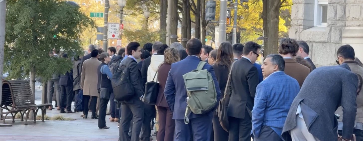 On Wednesday, November 12th 2025 at 9:30 AM, I stood in a lengthy line that wrapped around the block outside the Waldorf Astoria in Washington, DC.